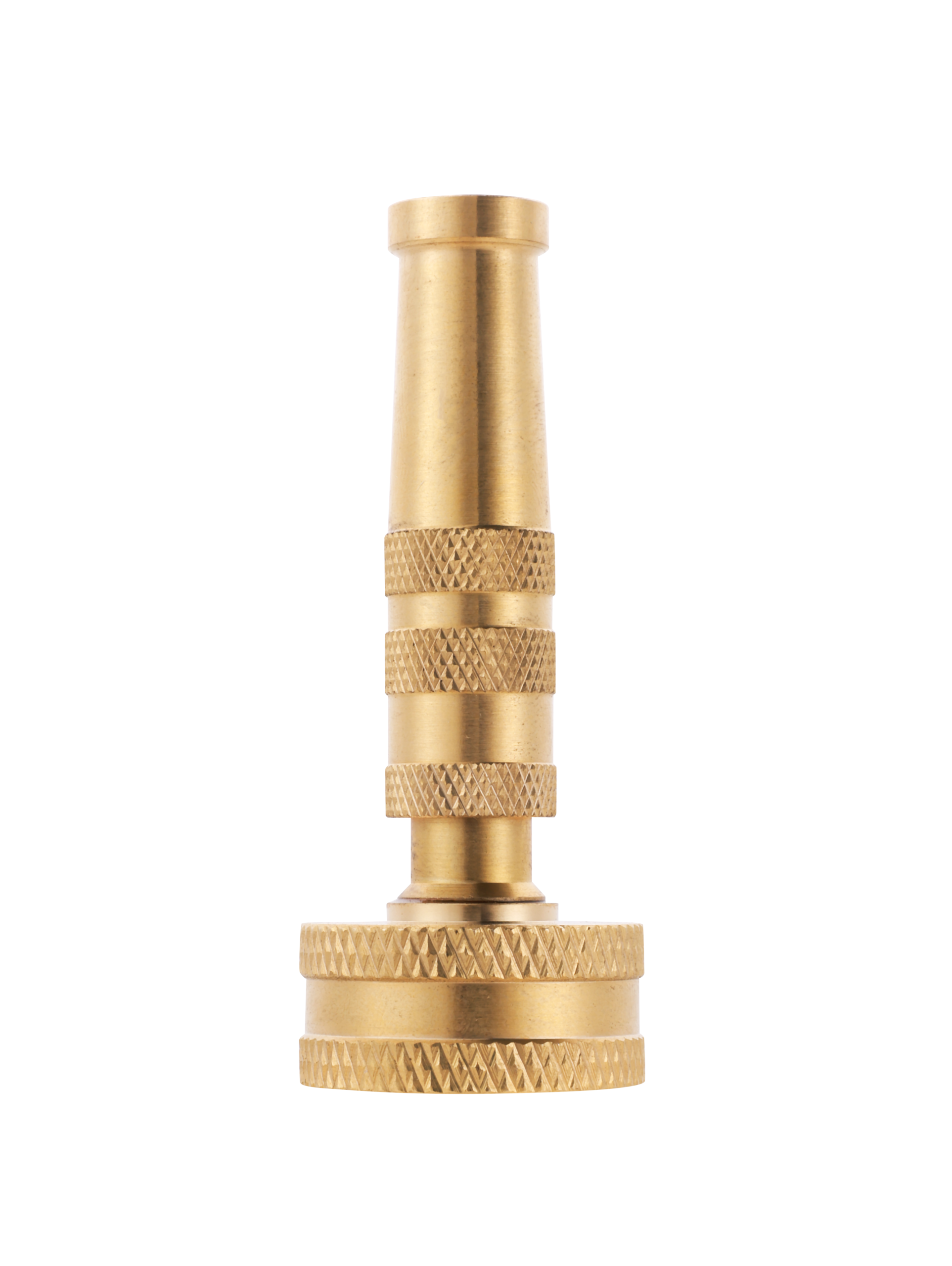 Heavy-duty brass fireman nozzle with a secure seal and corrosion resistance.