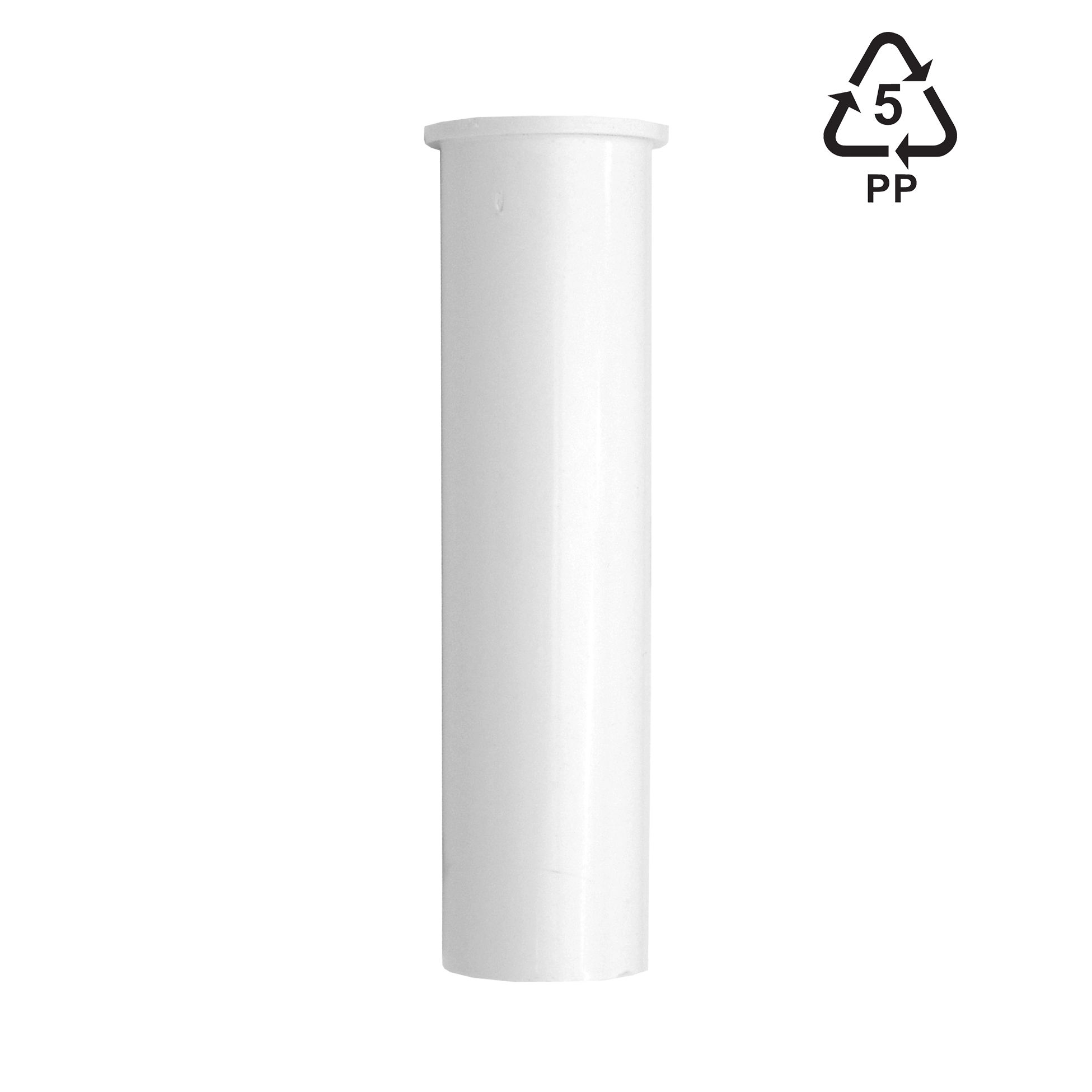 White tailpiece made of resistant polypropylene ensuring constant and secure water flow in sinks.