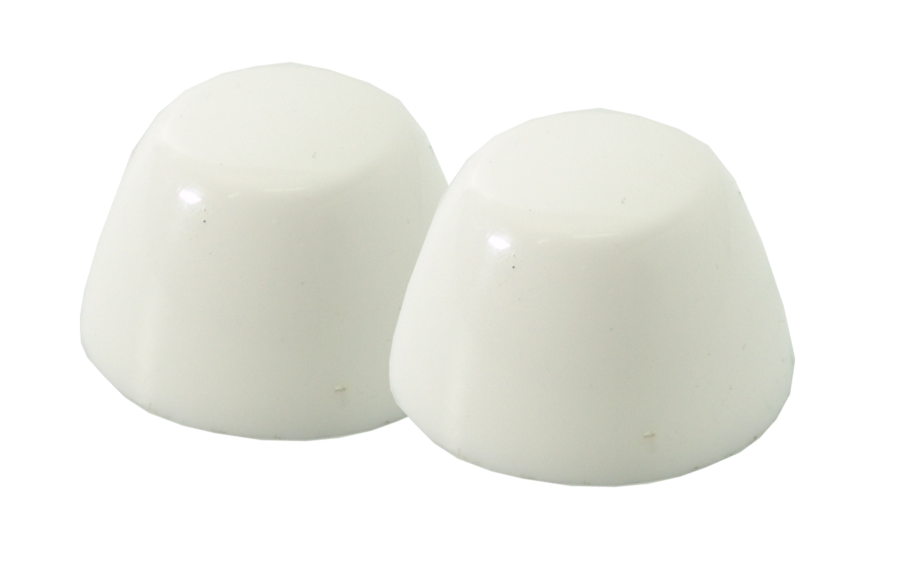 White polypropylene bolt covers designed to protect and conceal toilet bolts for a clean finish.